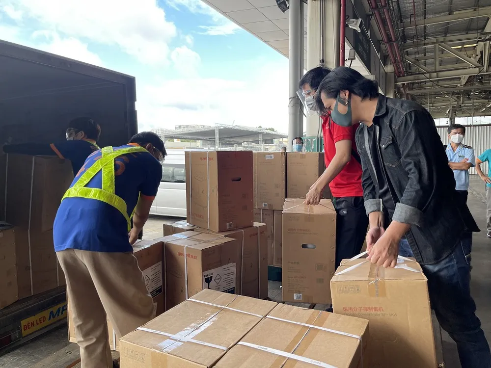 Tiếp nhận máy cung cấp oxy từ kho hải quan sân bay Tân Sơn Nhất. ẢNH: MTTQ