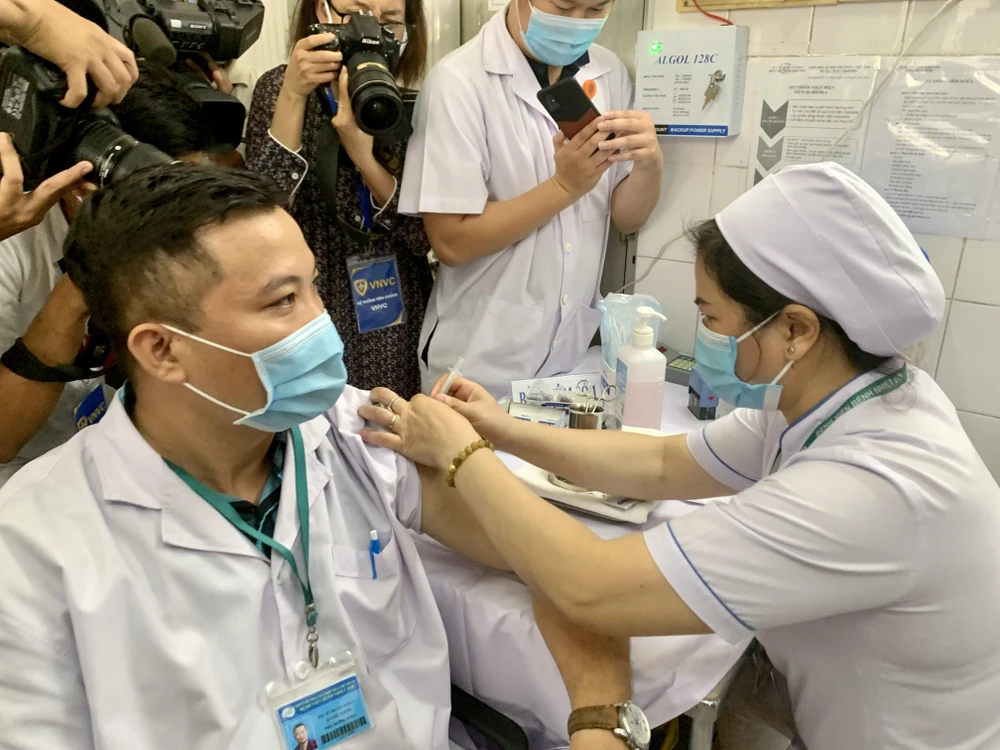 Theo đó, Trung tâm Kiểm soát Bệnh tật của 13 tỉnh, thành phố, 2 Bộ Công an và Quốc phòng, 21 bệnh viện điều trị bệnh nhân COVID-19 được tiếp nhận vaccine đợt đầu. Trong đó, Hải Dương là tỉnh được phân bổ nhiều nhất cả nước với 33.000 liều. Tại TP.HCM, BV Bệnh Nhiệt đới được phân 900 liều, HCDC được 8.000 liều và BV Dã chiến Củ Chi được 150 liều. BV Bệnh Nhiệt đới đã tiêm 900 liều vaccine theo chỉ tiêu.
