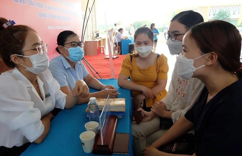 Người lao động được tư vấn và hỗ trợ làm thủ tục trong ngày tại ngày hội cải cách hành chính diễn ra vào sáng 8-6. Ảnh: TT |