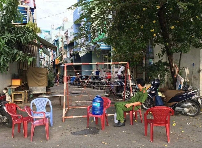 Cơ quan chức năng phong tỏa khu vực có ca bệnh COVID-19 ở quận 6, TP.HCM. Ảnh: TRẦN TIẾN