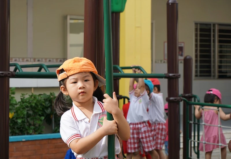 Học sinh Trường mầm non Anh Đào, quận Gò Vấp trong 1 tiết học ngoài trời. Ảnh: NGUYỄN QUYÊN