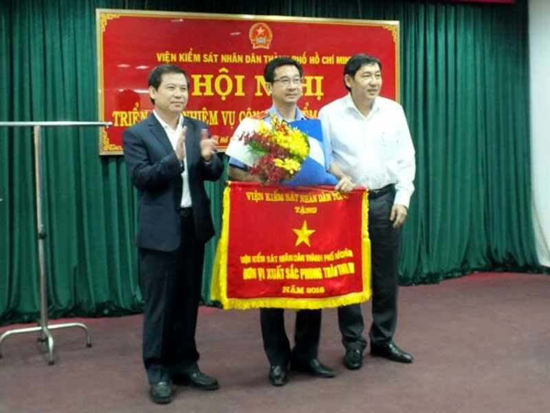 | Ba cán bộ được tặng bằng khen của Thủ tướng Tổng kết công tác thi đua, khen thưởng năm 2016, Viện trưởng VKSND Tối cao Lê Minh Trí đã tặng cờ thi đua của ngành kiểm sát nhân dân cho VKSND TP.HCM vì là đơn vị xuất sắc phong trào thi đua. Bên cạnh đó, có ba cá nhân thuộc ngành kiểm sát TP được tặng bằng khen của Thủ tướng là ông Trần Kiến Xương (Chánh Văn phòng VKSND TP), ông Ngô Phạm Việt (Phó Trưởng phòng Thực hành quyền công tố, kiểm sát điều tra và kiểm sát xét xử sơ thẩm án hình sự về kinh tế, chức vụ và tham nhũng) và ông Lê Ngọc Tiến (Viện trưởng VKSND huyện Nhà Bè). Án dân sự, hành chính tăng Trong khi án hình sự giảm về số lượng khởi tố mới thì các tranh chấp dân sự, khiếu kiện hành chính vẫn chưa giảm về số lượng với tính chất vụ việc tiềm ẩn nhiều phức tạp. Năm 2016, ngành kiểm sát TP.HCM đã thụ lý kiểm sát mới 36.664 vụ, việc dân sự - hôn nhân gia đình (tăng 3.035 vụ so với năm 2015) và 494 vụ án hành chính (tăng 58 vụ). |