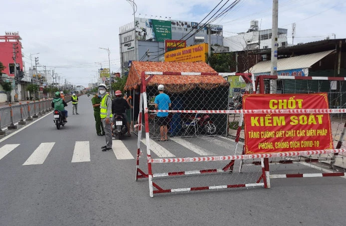 Chốt kiểm soát phòng cjhống COVID-19 trên địa bàn xã Trung Chánh, huyện Hóc Môn, TP.HCM. Ảnh: TRẦN NGỌC