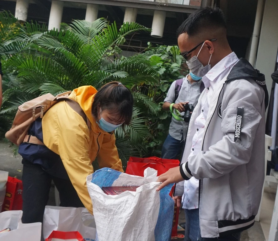 Chương trình được tổ chức như một món quà tinh thần dành tặng cho các bạn sinh viên khó khăn không có điều kiện về quê ăn tết. Ảnh: NQ