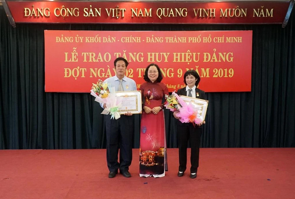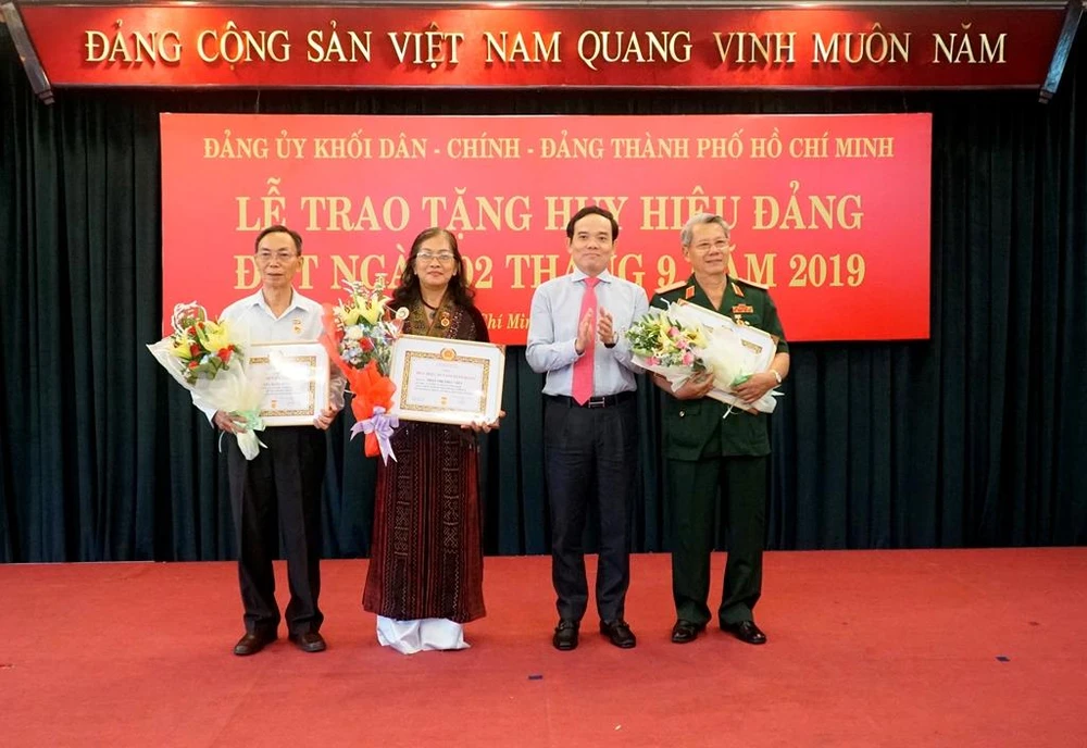 Chiều 28-8, tại Trung tâm hội nghị 272 Võ Thị Sáu (quận 3, TP.HCM), Ban Thường vụ Đảng ủy Khối Dân - Chính - Đảng TP.HCM tổ chức trang trọng lễ trao Huy hiệu Đảng cho 28 đảng viên 50, 45, 40 và 30 năm tuổi Đảng.