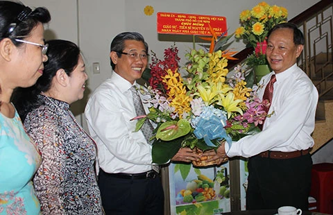 Thay mặt đoàn, phó chủ tịch UBND TP bày tỏ tri ân các nhà giáo trong thời gian qua luôn tâm huyết, cống hiến để đưa ngành GD&ĐT của TP đạt được nhiều kết quả đáng khích lệ, nhiều năm liền là lá cờ đầu trong cả nước. Nhân dịp này, phó chủ tịch chúc tập thể cán bộ, nhân viên của Sở và đội ngũ giáo viên toàn TP luôn dồi dào sức khỏe, gặt hái thêm nhiều thành công và tiếp tục thực hiện tốt các nghị quyết về đổi mới giáo dục của Trung ương và TP.