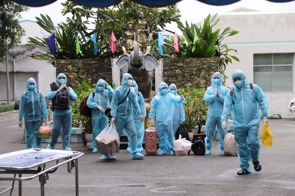 Bệnh nhân COVID-19 xuất viện ở Bệnh viện điều trị COVID-19 Trưng Vương. Ảnh: HL