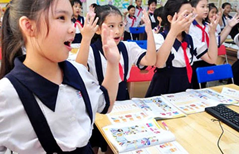 Học sinh tiểu học trong một tiết học tiếng Anh. Ảnh: TL