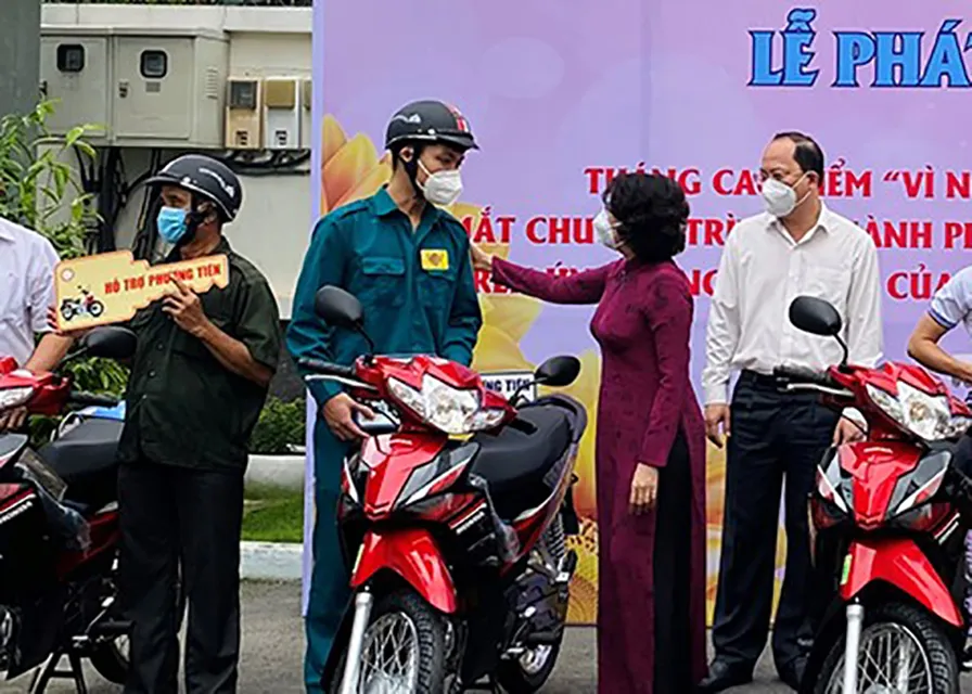 Đến nay, Ủy ban MTTQ Việt Nam TP.HCM đã hỗ trợ 30 phương tiện làm ăn, phương tiện sinh hoạt với tổng trị giá 515.400.000 đồng bao gồm: 16 xe máy, 2 xe lăn, 3 xe máy dành cho người khuyết tật, 1 xe bán cà phê và bàn ghế, 1 xe đạp, 3 xe nước mía, 2 máy may, 1 xe bánh bao và 1 con bò giống.