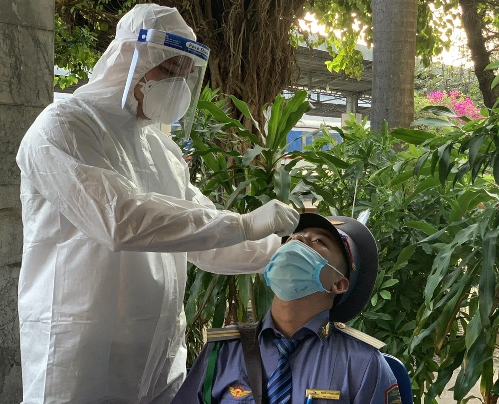 Nhân viên y tế TP.HCM đang lấy mẫu giám sát nhân viên đường sắt. Ảnh: HL
