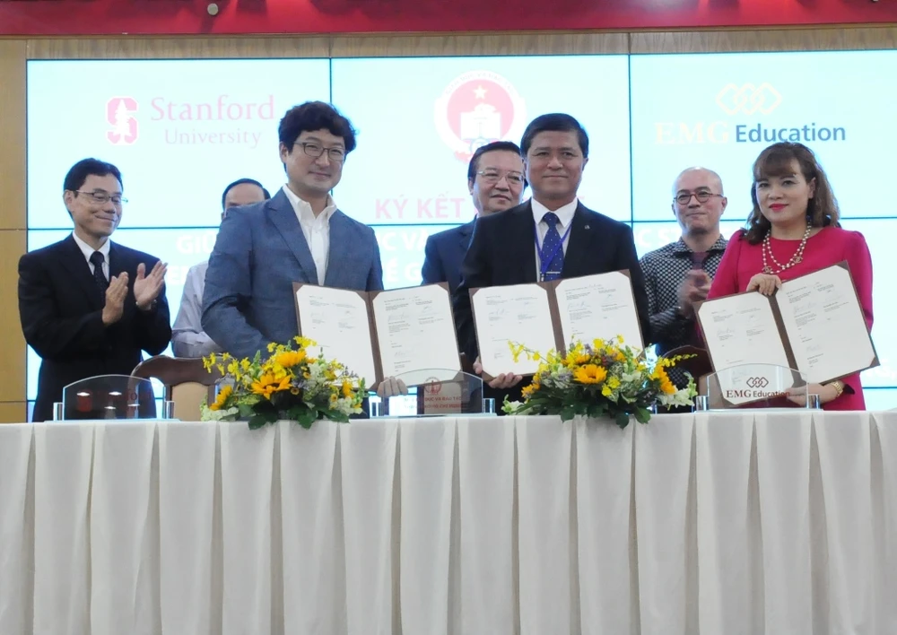 Tại đây, GS Paul Kim (Giám đốc phụ trách công nghệ, Văn phòng Đổi mới và công nghệ, Phó Hiệu trưởng Trường Giáo dục sau đại học, ĐH Stanford) đã chia sẻ: “Chúng tôi vui mừng được hợp tác để phổ biến những công nghệ giáo dục tiên tiến nhất của ĐH Stanford nhằm phục vụ cho mục đích phát triển trí tuệ, nâng cao khả năng sáng tạo, thực hành khoa học, biết giải quyết những vấn đề hiện thực của cuộc sống. Từ đó sẽ thúc đẩy học tập trọn đời, tinh thần khởi nghiệp, phát minh sáng chế cho thế hệ trẻ”.