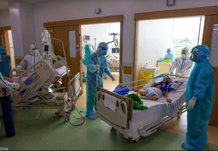 Nhân viên y tế BV Hồi sức COVID-19 chăm sóc các ca bệnh nặng. Ảnh: NGUYỆT NHI