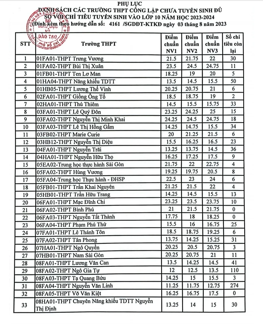 Trước tình hình trên, TPHCM cho phép các trường còn thiếu chỉ tiêu thực hiện việc xét tuyển bổ sung.