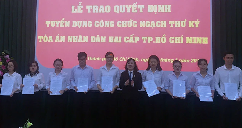 Theo đó, chánh án TAND TP.HCM quyết định tuyển dụng 42 thư ký mới và phân công các thư ký mới tuyển dụng về công tác tại các tòa chuyên trách, đơn vị trực thuộc TAND TP.HCM và TAND cấp quận, huyện. Thời gian tập sự của các thư ký mới là 12 tháng. Đáng chú ý trong 42 thư ký mới có hai thư ký đã có trình độ thạc sĩ.