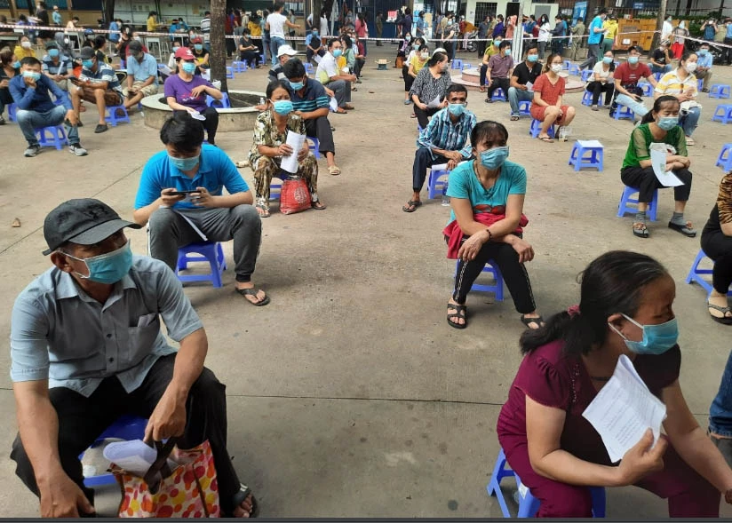 Công nhân khu công nghiệp ở TP.HCM chờ tiêm vaccine ngừa COVID-19. Ảnh: TN