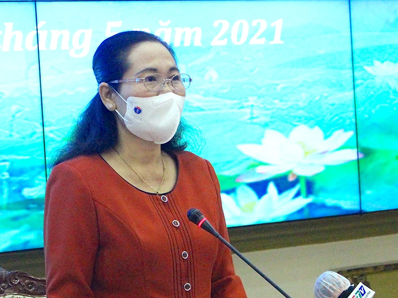 Bà Nguyễn Thị Lệ, Phó Bí thư Thành ủy TP.HCM, đề nghị chuẩn bị công tác phòng chống dịch ở các địa điểm bỏ phiếu. Ảnh: LÊ THOA