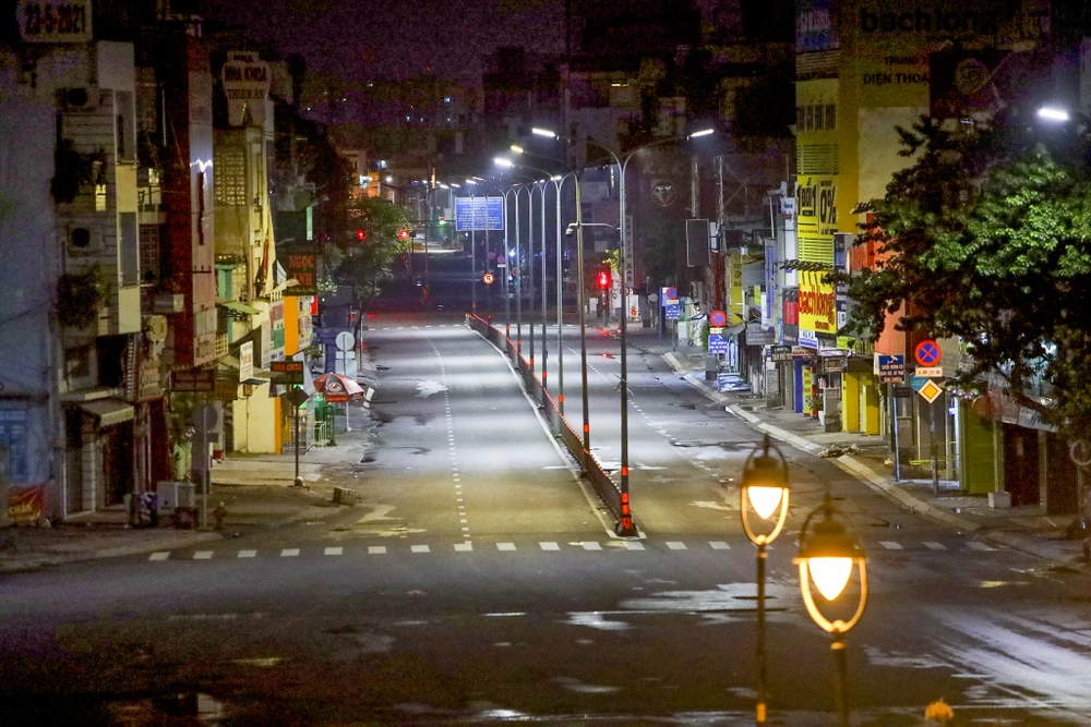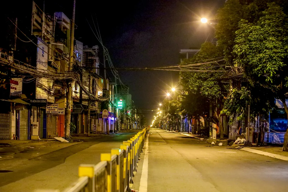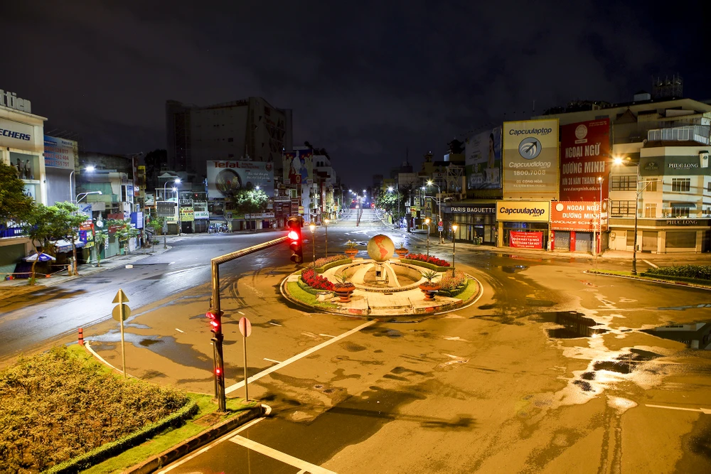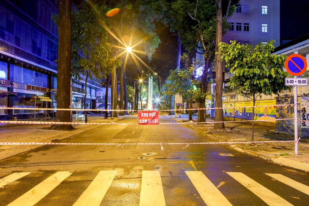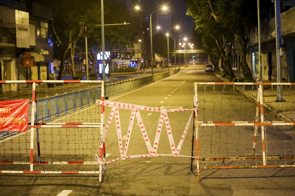 Trước đó, đường xá đã vãn người, khu vực trung tâm TP vắng lặng, nhiều nơi giăng dây, chỉ chừa lại trục đường chính.