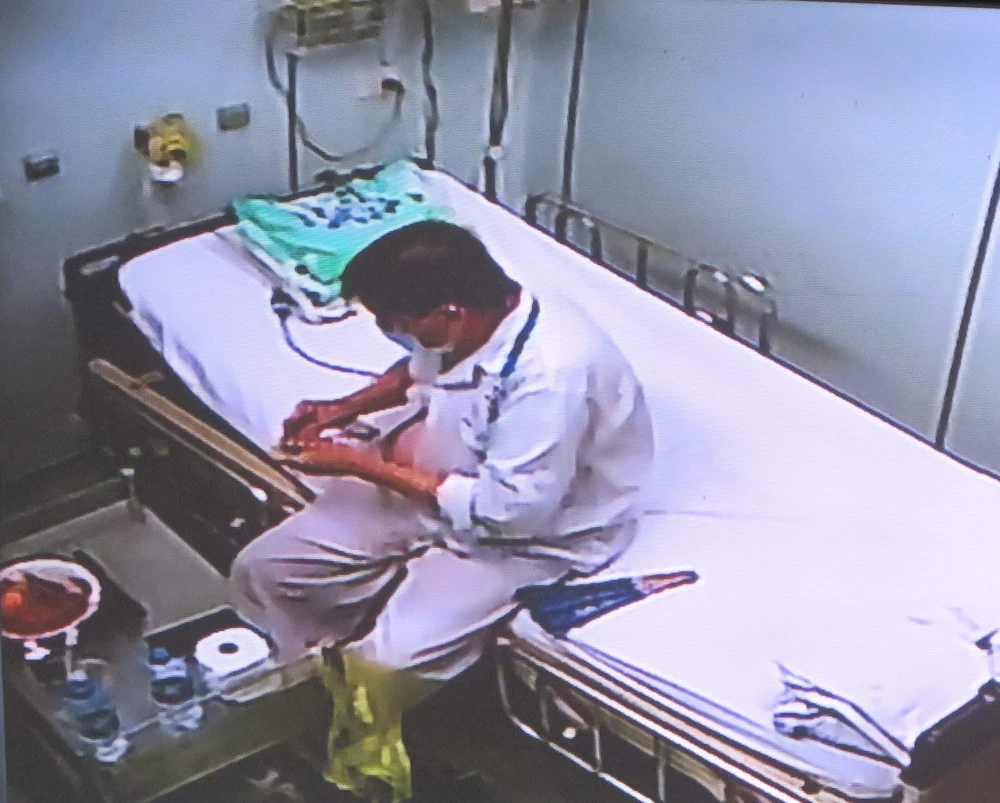 Bệnh nhân K. trong phòng điều trị ở BV Bệnh nhiệt đới. Ảnh: HL