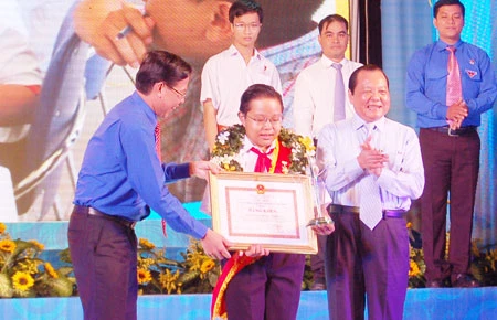 Ông Lê Thanh Hải, Ủy viên Bộ Chính trị, Bí thư Thành ủy TP.HCM, trao bằng khen cho công dân trẻ tiêu biểu 2013. Ảnh: ANH PHÚ