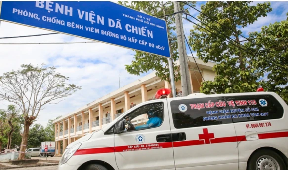 Xe đưa người thực hiện cách ly tới bệnh viện dã chiến TP.HCM ở huyện Củ Chi. Ảnh: CDC