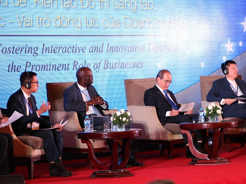 Phát biểu khai mạc diễn đàn, ông Nguyễn Thành Phong, Chủ tịch UBND TP.HCM, nhấn mạnh: TP đã triển khai đề án xây dựng TP.HCM trở thành đô thị thông minh giai đoạn 2017-2020, tầm nhìn đến năm 2025. Trong đó, điểm nhấn là xây dựng khu đô thị (KĐT) sáng tạo tại các quận 2, 9 và Thủ Đức trên nền tảng phát triển kinh tế số và kinh tế tri thức.