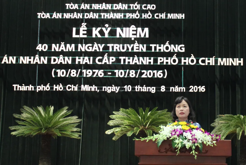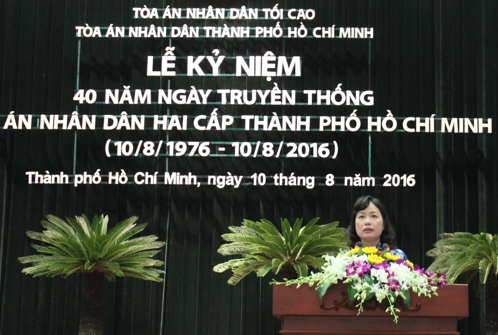 Phát biểu tại buổi lễ, Chánh án TAND TP.HCM Ung Thị Xuân Hương chia sẻ những ngày đầu thành lập chỉ với bảy thẩm phán và một số nhân sự được tăng cường từ ngoài Bắc vào, trải qua chặng đường dài 40 năm phát triển, đến nay biên chế tòa đã có hơn 1.300 người. Đây là đội ngũ những cán bộ, công chức ngày đêm thực hiện nhiệm vụ bảo vệ công lý, bảo vệ quyền con người.
