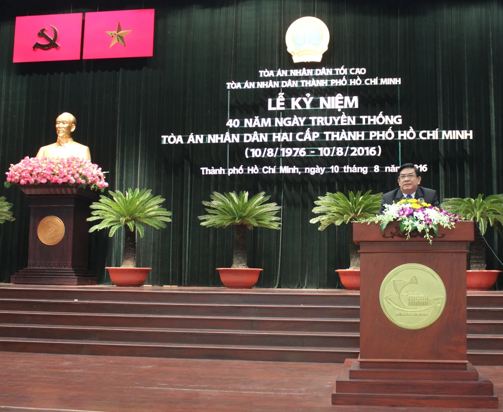 Ngày 10-8, tại hội trường Thành ủy TP.HCM, TAND TP.HCM long trọng tổ chức lễ kỷ niệm 40 năm ngày truyền thống của ngành (10-8-1976 - 10-8-2016).