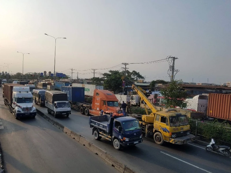 Sự cố khiến cho giao thông qua khu vực bị ùn tắc nghiêm trọng, dòng phương tiện xếp hàng dài khoảng 2 km ở cả hai hướng.