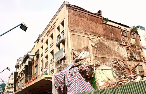 Nhà giữ xe phía sau Thương xá Tax đang bị đập bỏ. Ảnh chụp chiều 21-10. Ảnh: PHƯỚC TĨNH