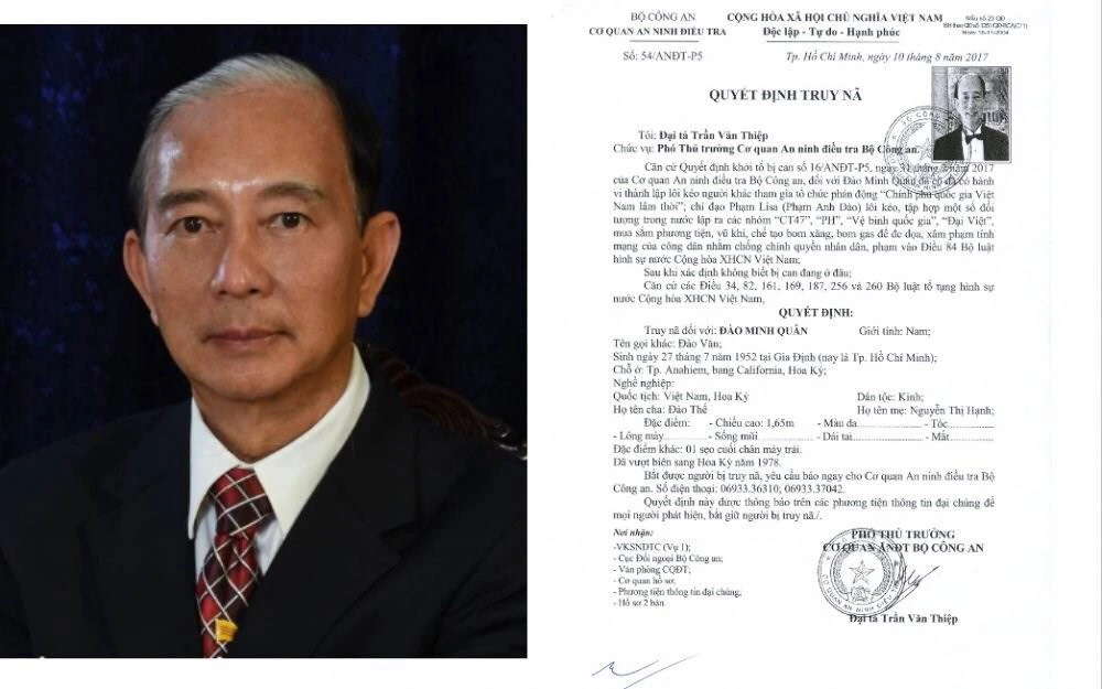 Quyết định truy nã Đào Minh Quân.