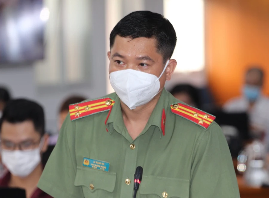 Thượng tá Lê Mạnh Hà, Phó trưởng Phòng Tham mưu Công an TP.HCM, thông tin tại họp báo. Ảnh: TÁ LÂM