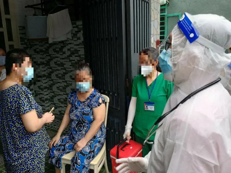 Nhân viên y tế huyện Hóc Môn, TP.HCM đến thăm khám ca bệnh COVID-19 tại nhà. Ảnh: TRẦN NGỌC