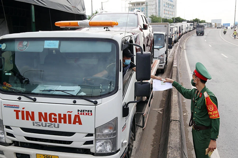 Còn tại chốt kiểm soát ở chân cầu Vĩnh Bình (phường Hiệp Bình Phước, TP Thủ Đức), tất cả người điều khiển phương tiện xe máy, ô tô, xe tải đều phải xuất trình được giấy xét nghiệm âm tính với COVID-19 mới được phép di chuyển. Với các trường hợp giấy xét nghiệm quá thời hạn ba ngày hoặc không có giấy xét nghiệm âm tính COVID-19 sẽ được yêu cầu quay lại.•