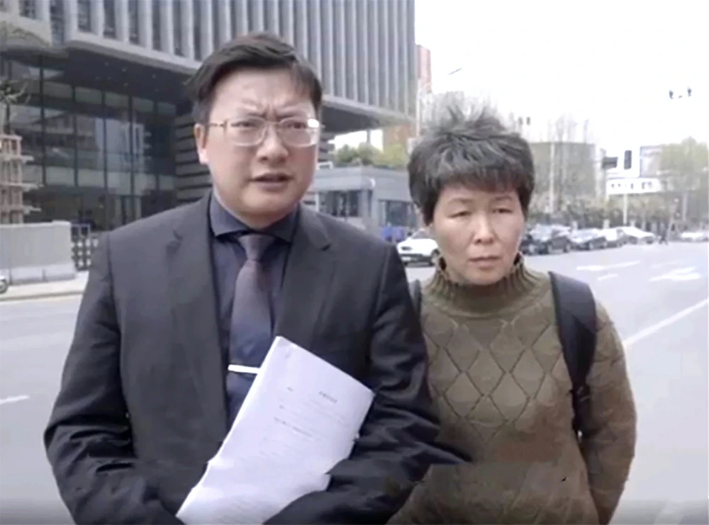 Luật sư Zhou Zhaocheng và chị gái của Diao Aiqing là Diao Aihua ở Nam Kinh vào ngày 29-3. Ảnh SCMP