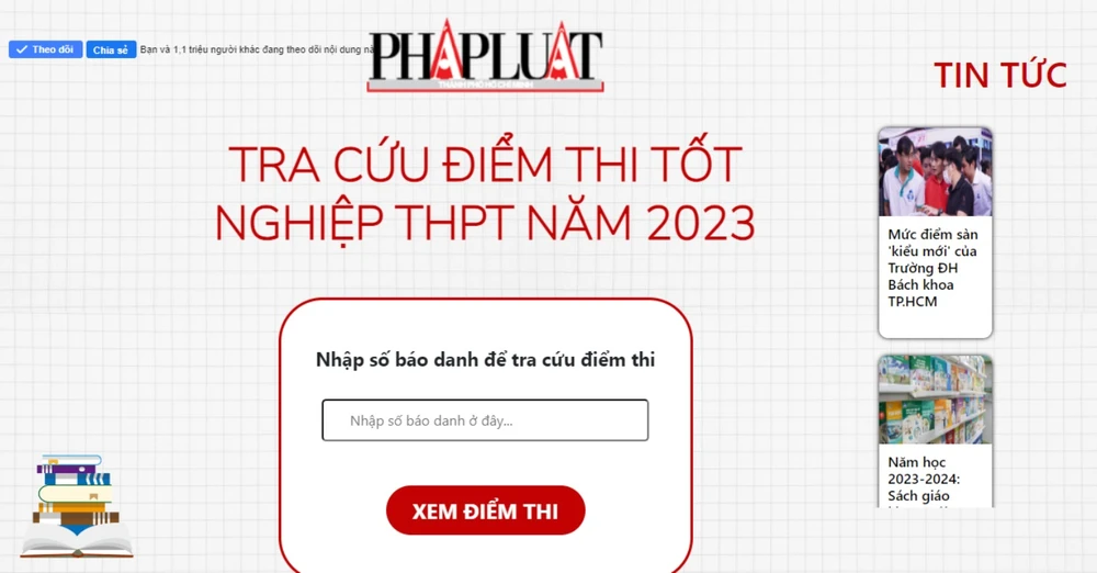 | Tra cứu điểm thi trên PLO.VN. Ảnh: CHỤP MÀN HÌNH |