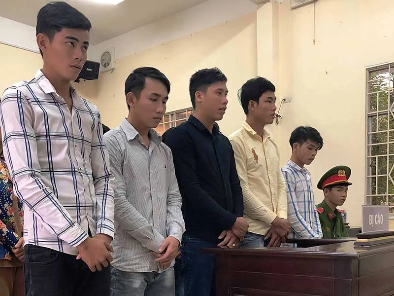 Tòa đã chấp nhận đề nghị của đại diện VKS, quan điểm bào chữa của các luật sư và tuyên phạt chín bị cáo mức án bằng với thời hạn tạm giam. Cụ thể, bị cáo Mạnh hai năm 10 tháng tù; các bị cáo Còn, Tâm và Quí cùng mức án hai năm một tháng 16 ngày tù. Các bị cáo Hào, Trí bị tuyên phạt hai năm một tháng 15 ngày tù. Bị cáo Tèo và Tú bị phạt 11 tháng 13 ngày tù. Bị cáo Hậu 10 tháng bảy ngày tù. Các bị cáo đều đã chấp hành xong hình phạt tù và được trả tự do ngay tại tòa.