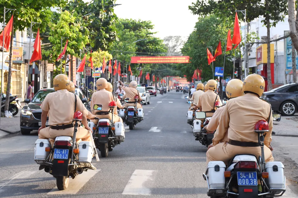Các lực lượng ra quân bảo đảm ANTT. Ảnh: HG