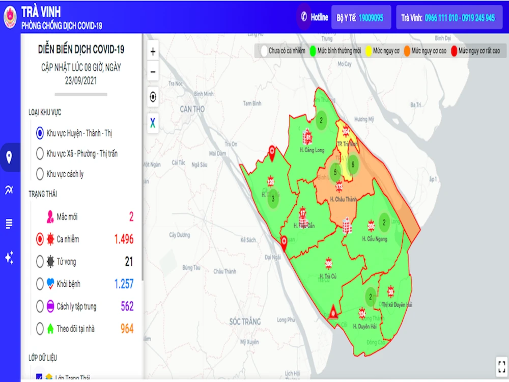 Tính đến sáng 23-9, toàn tỉnh Trà Vinh có 1.496 ca nhiễm COVID-19, đã điều trị khỏi cho 1.257 ca và có 21 ca tử vong. Đến nay có bảy địa phương bình thường mới, riêng TP Trà Vinh ở mức nguy cơ và huyện Châu Thành ở mức nguy cơ cao.