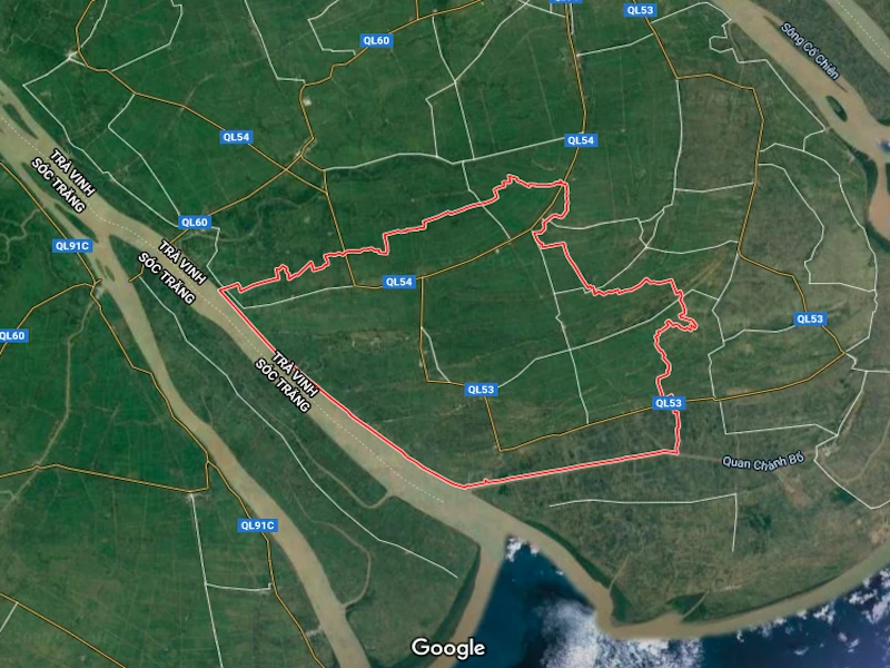 Bản đồ vệ tinh huyện Trà Cú, tỉnh Trà Vinh. Ảnh: GOOGLE MAPS