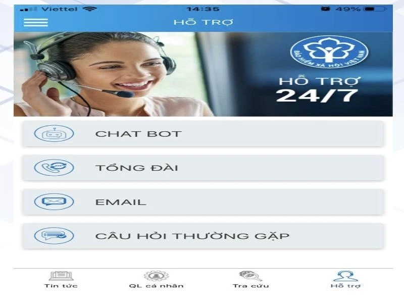Hỗ trợ tư vấn trực tuyến 24/7 (trả lời tự động - Chatbot, tổng đài hỗ trợ 1900.9068, email, câu hỏi thường gặp) để kịp thời giải đáp, tư vấn, hỗ trợ các câu hỏi, băn khoăn, thắc mắc về BHXH, BHYT, BHTN cho người dân.