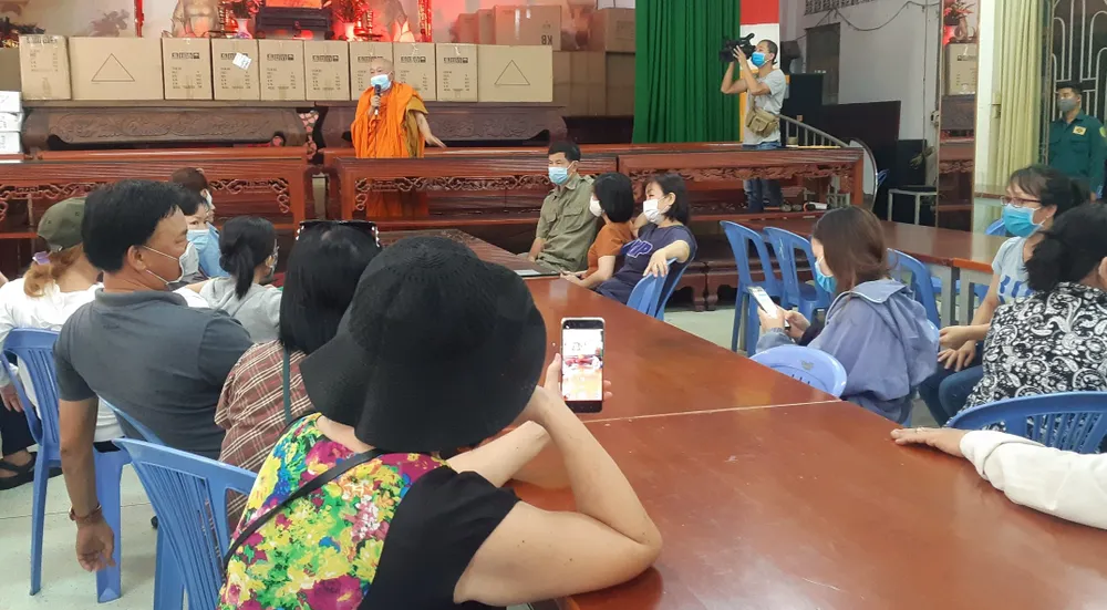 Thượng toạ Thích Thiện Chiếu, Trụ trì chùa Kỳ Quang 2, đã tổ chức cuộc họp để thông tin tới thân nhân của những người có tro cốt gửi trong chùa. Ảnh: NGUYỄN HIỀN