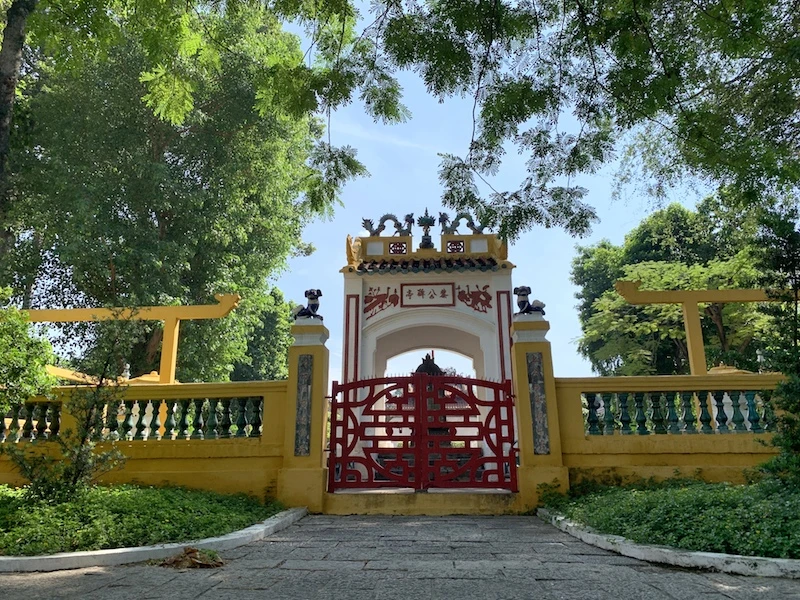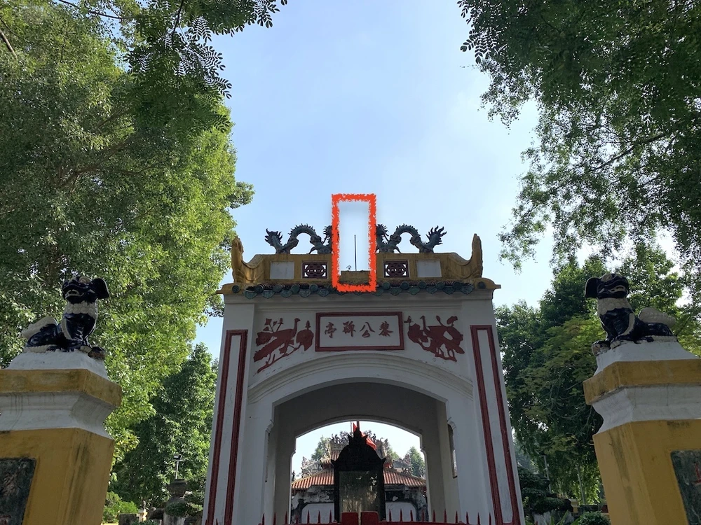 Bia đình ở Lăng Ông nhìn từ phía mộ Đức Tả quân khi đã mất trái châu. Ảnh: Q.T