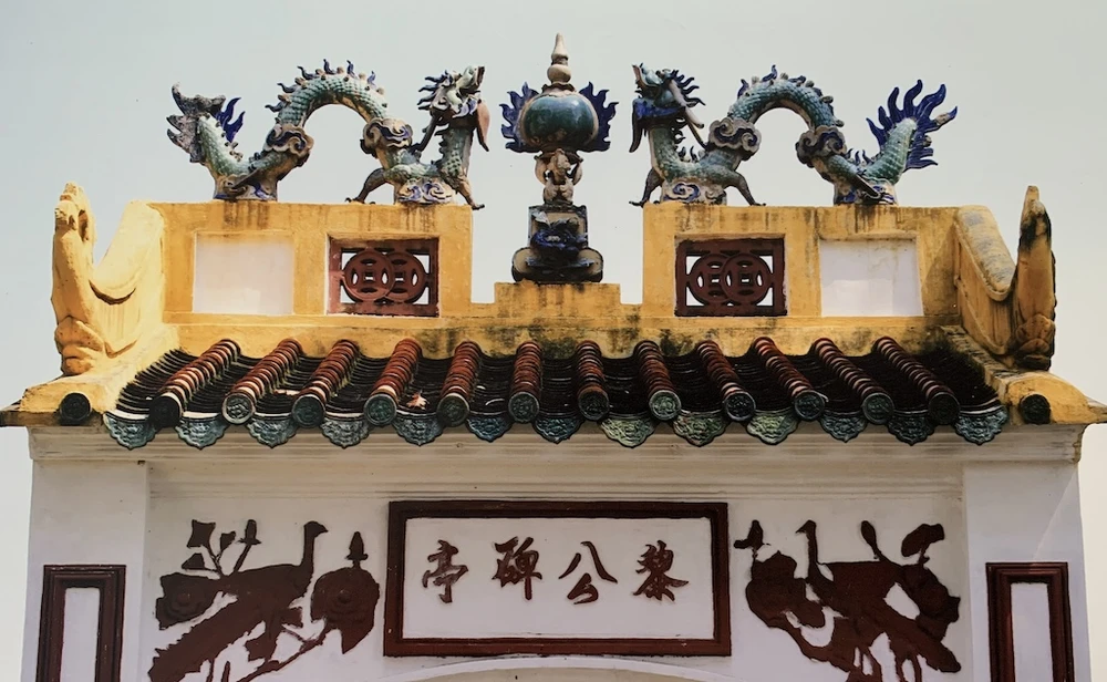 Bộ lưỡng long tranh châu trên nóc bia đình lăng Tả quân Lê Văn Duyệt. Ảnh: Q.T