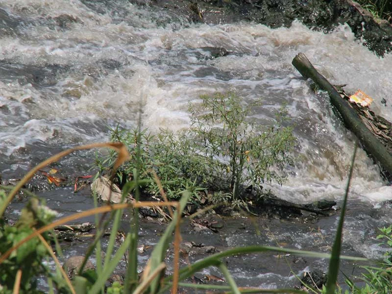 Nước con suối Reo vốn trong vắt giờ đen ngòm, gây ngứa. Ảnh: T.DŨNG