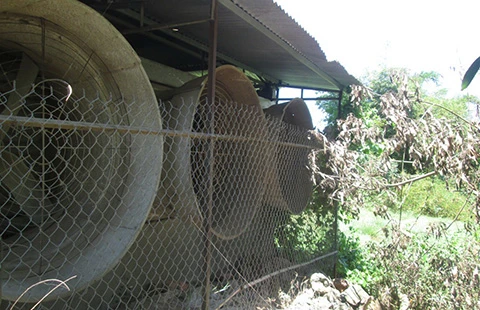 Hệ thống quạt của trại heo phát tán mùi hôi ra môi trường. Ảnh: TIẾN DŨNG