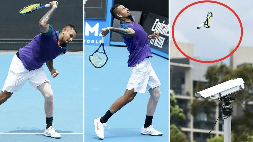"Trai hư" người Úc thường giải tỏa năng lượng tiêu cực bằng cách đập nát và quăng luôn vợt của mình. ẢNH: GETTY