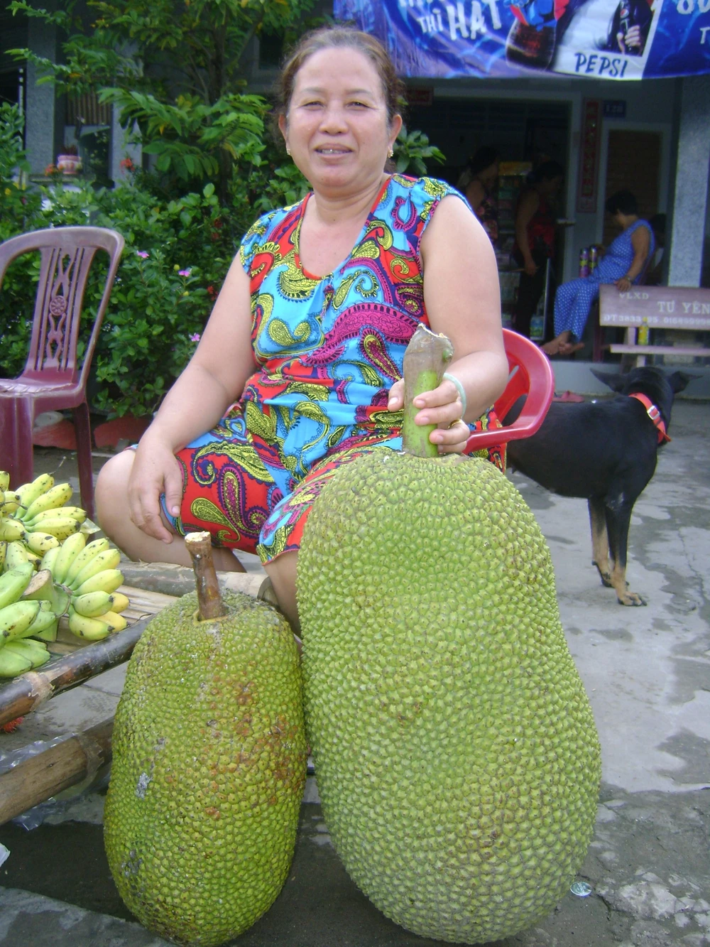 Bà Mai bên trái mít to khủng (bên phải)