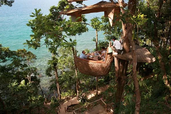 Các nhân viên phục vụ rất chu đáo và họ phải sử dụng ròng rọc để lên được các Pod ở trên cây