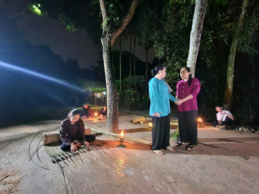 Cụm 3: Nghề truyền thống Củ Chi tái hiện lại cảnh chẻ nang, đương bồ, rổ, rá, ky, vừng, sàng… dưới ánh trăng và bên ngọn đèn dầu leo lắt của một gia đình có truyền thống cách mạng.