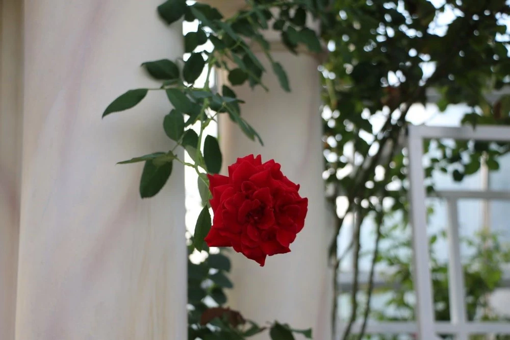 Thoắt ẩn thoắt hiện khắp các cung đường tình yêu này chính là những khóm hồng leo tường, những bụi hồng e ấp nhưng thơm nồng và bền bỉ. Sự điểm xuyến không thể thiếu vắng như một nhân diện khác của tình yêu, làm tròn đầy khu vườn của những kẻ si tình.
